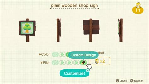 Step 2: Once you've selected the DIY Sign, you'll need to choose a customization kit. These kits contain different designs, patterns, and textures that you can use to decorate your sign. You can find customization kits at Nook's Cranny or at the Able Sisters' shop.
